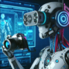 A breathtaking, epic landscape blending cinematic reality and advanced nano-technology. At the center, a solitary, massive digital structure composed of shimmering, connecting nano-particles, micro-circuits, and fractal geometric patterns is integrated into a futuristic city skyline. The entire scene is bathed in a dramatic deep electric neon blue, cyan, and subtle silver light against a majestic, moody, dark sky with swirling galaxies. Ultra-detailed, photorealistic 8k resolution, cinematic lighting, dramatic depth of field, futuristic-luxurious atmosphere. Isolated elements like abstract glowing particles float in the air. The overall tone is luxurious and highly technological.